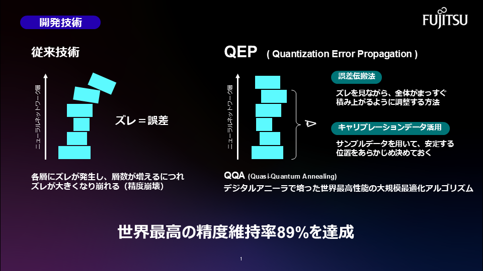 - 富士通の新しいアプローチは、精度維持という最大の課題を克服。